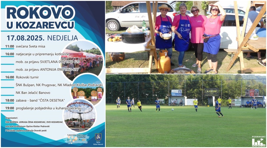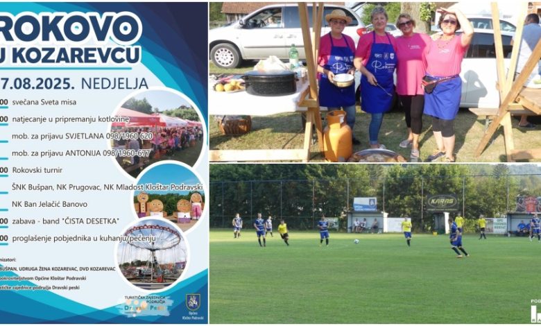 U nedjelju, 17. kolovoza 2025., u Kozarevcu će se održati tradicionalna proslava Rokovo, koja svake godine okuplja brojne mještane i posjetitelje željne dobre hrane, sporta i glazbe.