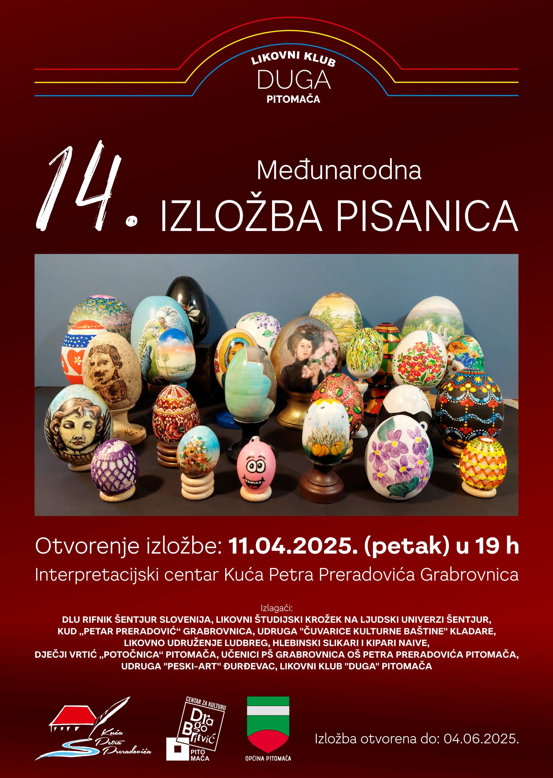 U petak, 11. travnja, s početkom u 19 sati održat će se otvorenje 14. međunarodne izložbe pisanica u Interpretacijskom centru Kuća Petra Preradovića u Grabrovnici.