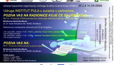 Udruga Institut Pula u suradnji s partnerima organizira ciklus radionica s ciljem popularizacije STEM područja među djecom i učenicima. Radionice…