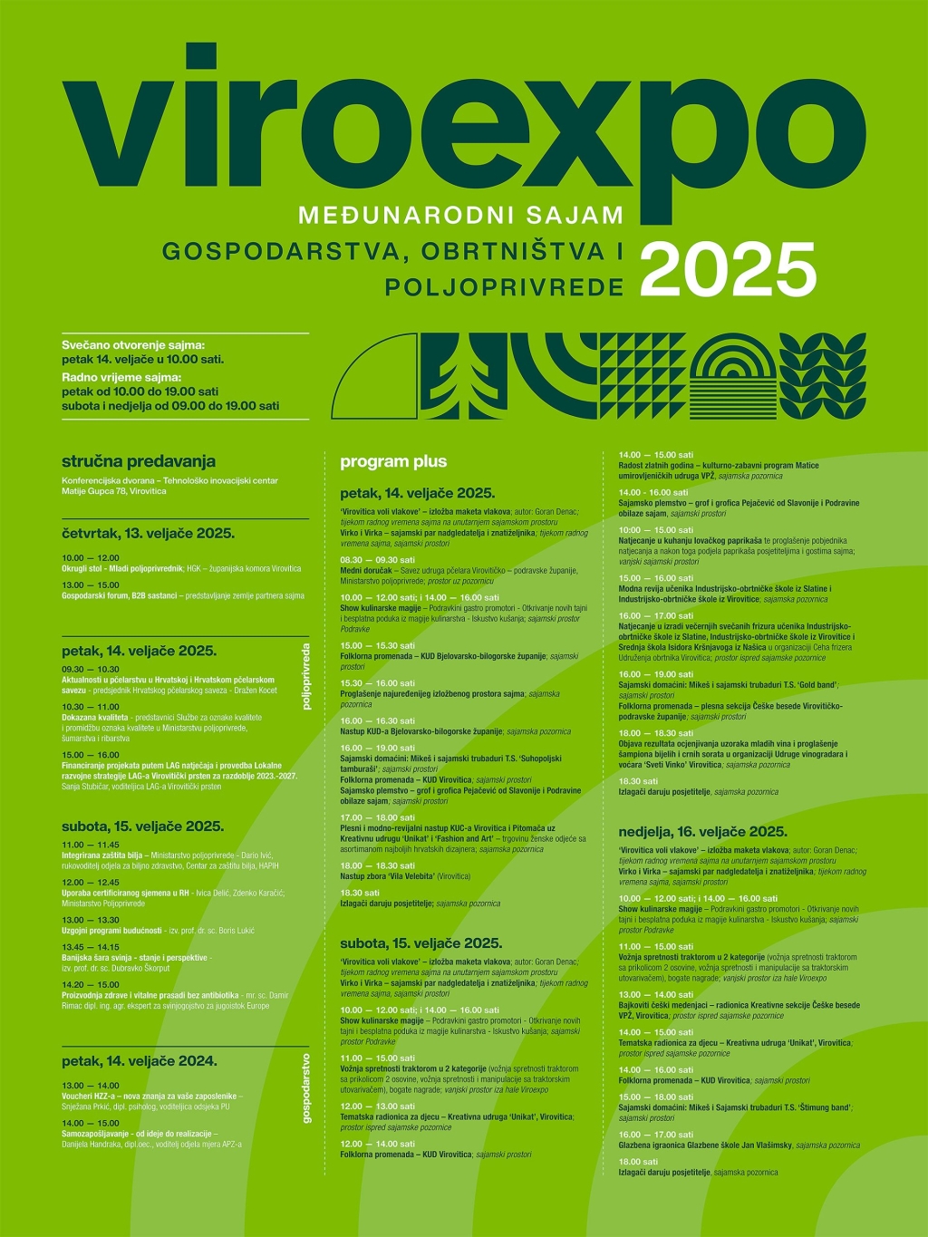 Ovogodišnji službeni slogan Viroexpa “Sajam s dušom”, govori o ljudima, njihovim pričama, radu i vizijama, a održat će se od 14. do 16. veljače.
