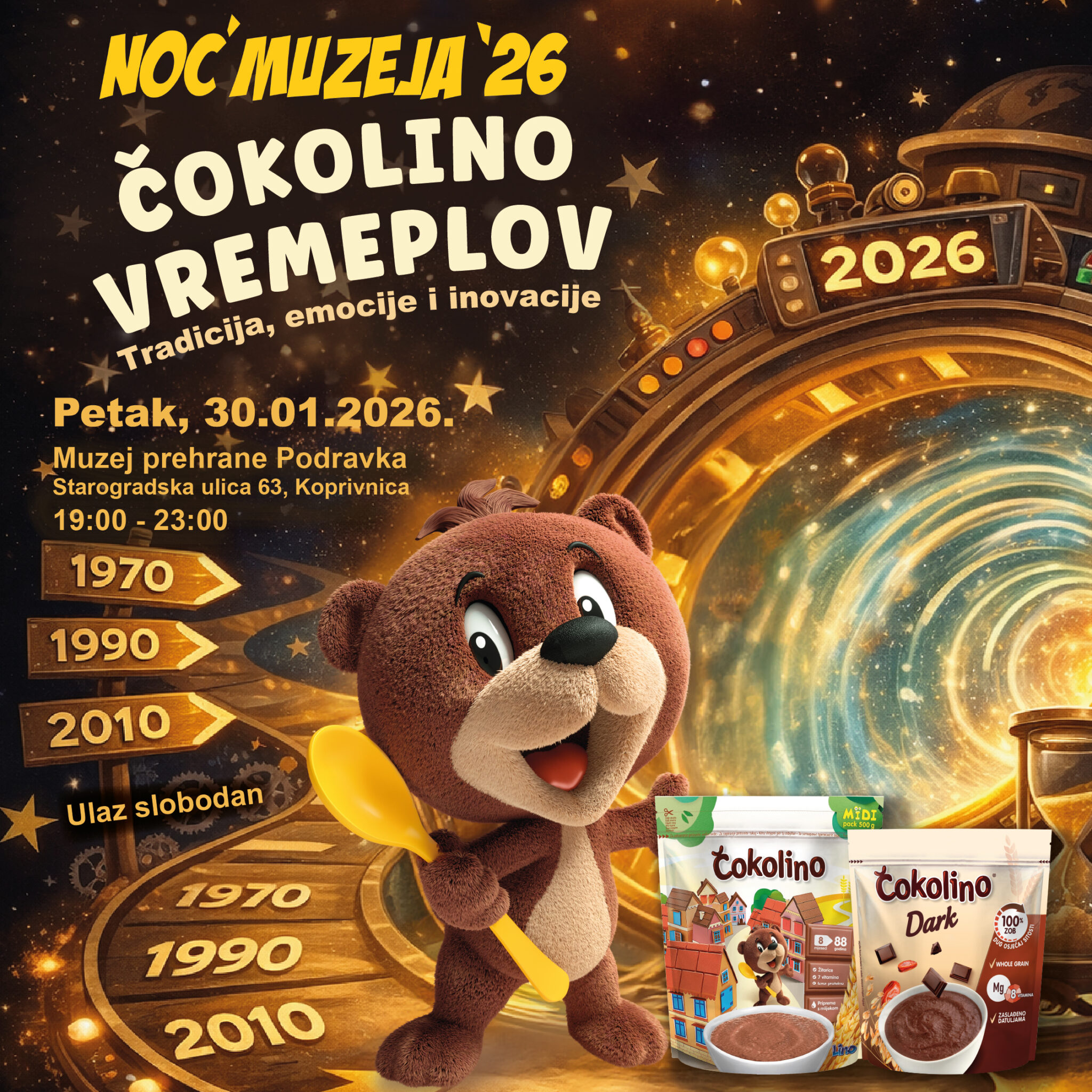 Podsjetimo, Čokolino je na tržištu još od 1970. godine, a danas ga s jednakim veseljem konzumiraju i djeca i odrasli. U sklopu Noći muzeja posjetitelje očekuje i druženje s Linom, kao i kušanje Čokolino specijaliteta koje će pripremati Podravkini kuhari.
