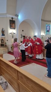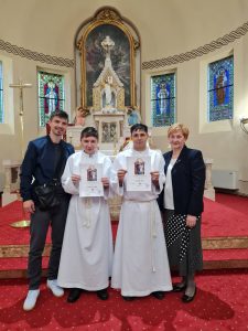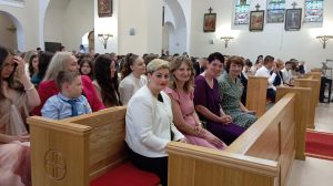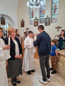 “Dani poput ovih podsjećaju nas na snagu zajedništva, ljubavi i vjere. Podsjećaju nas na ono bitno – da se najveće stvari događaju u tišini, u iskrenim osmijesima, u stisnutim rukama i zagrljajima podrške. Velika srca zaista običnih ljudi igraju veliku ulogu našoj zajednici. Veliko srce ima i naš direktor Ivica i njegova obitelj i zato smo danas tu kod vas. Hvala vam što ste nas primili i čestitamo vam simboličnim poklonima na vašim sakramentima.”- rekla je Anja, inače voditeljica marketinga Podravskog radija.