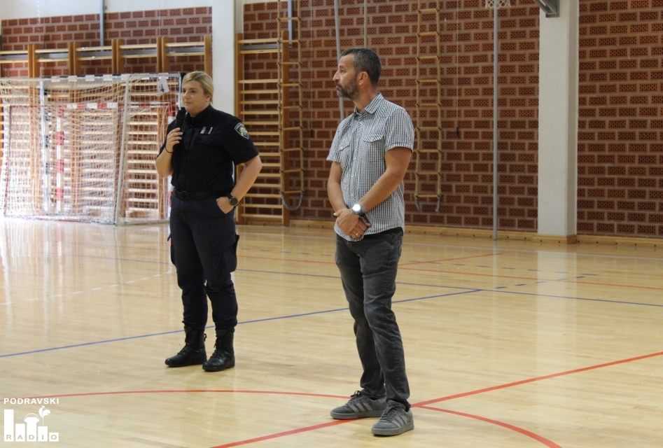 Veronika Šipek, policijska službenica PP Đurđevac je djeci i roditeljima prvog dana nastave, dala savjete vezane uz ponašanje u prometu, napomenuvši da je vezanje obavezno.