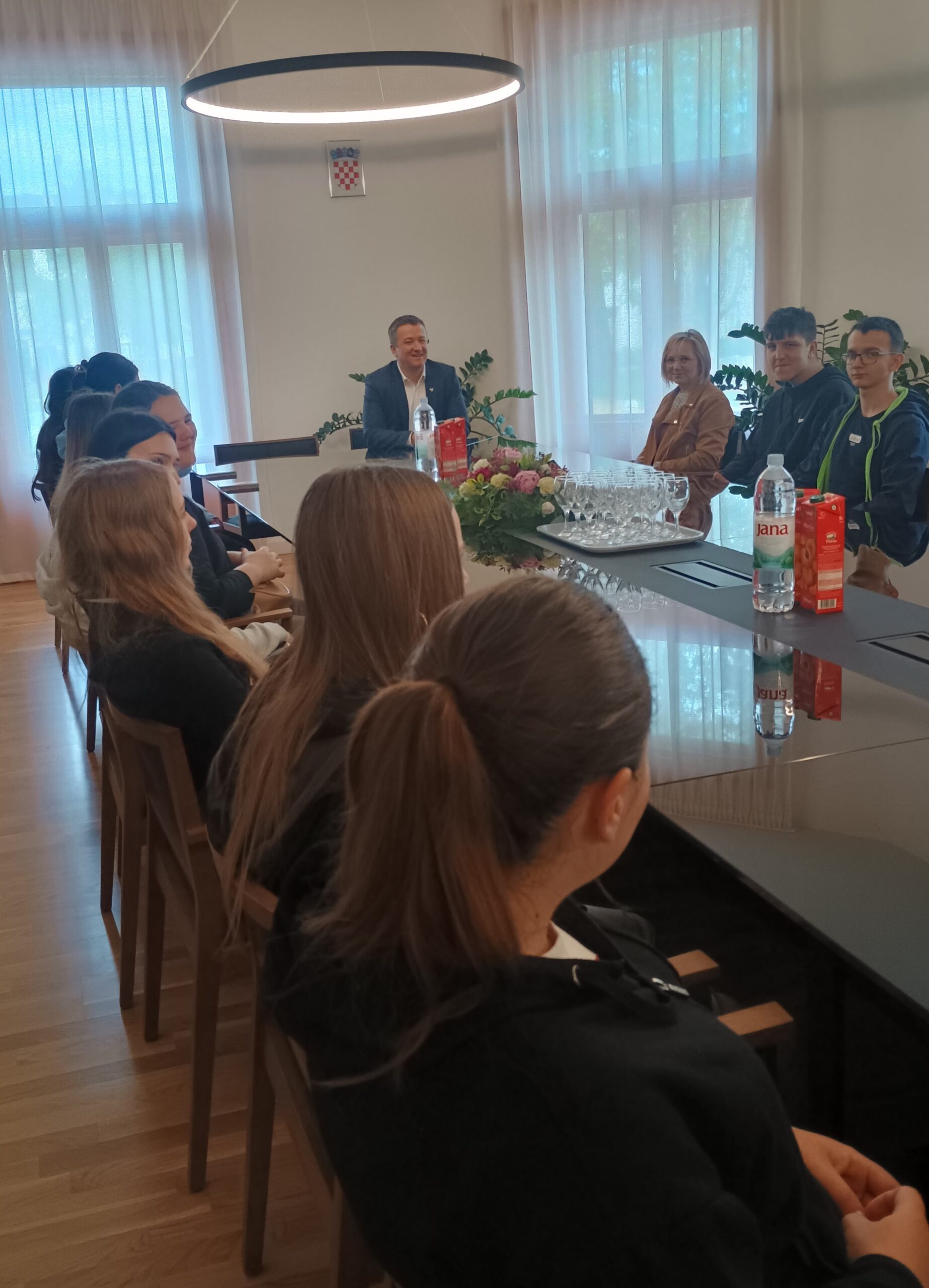 Prvi dio dana bio je posvećen posjetu Gradskoj upravi Grada Đurđevca. Učenici su imali priliku obići prostorije Grada, uključujući i lijepo uređenu vijećnicu koja ih je impresionirala svojom modernošću i funkcionalnošću. U sklopu neformalne inicijative „Politička kava”, susreli su se s gradonačelnikom koji ih je srdačno ugostio te potaknuo otvoreni razgovor.