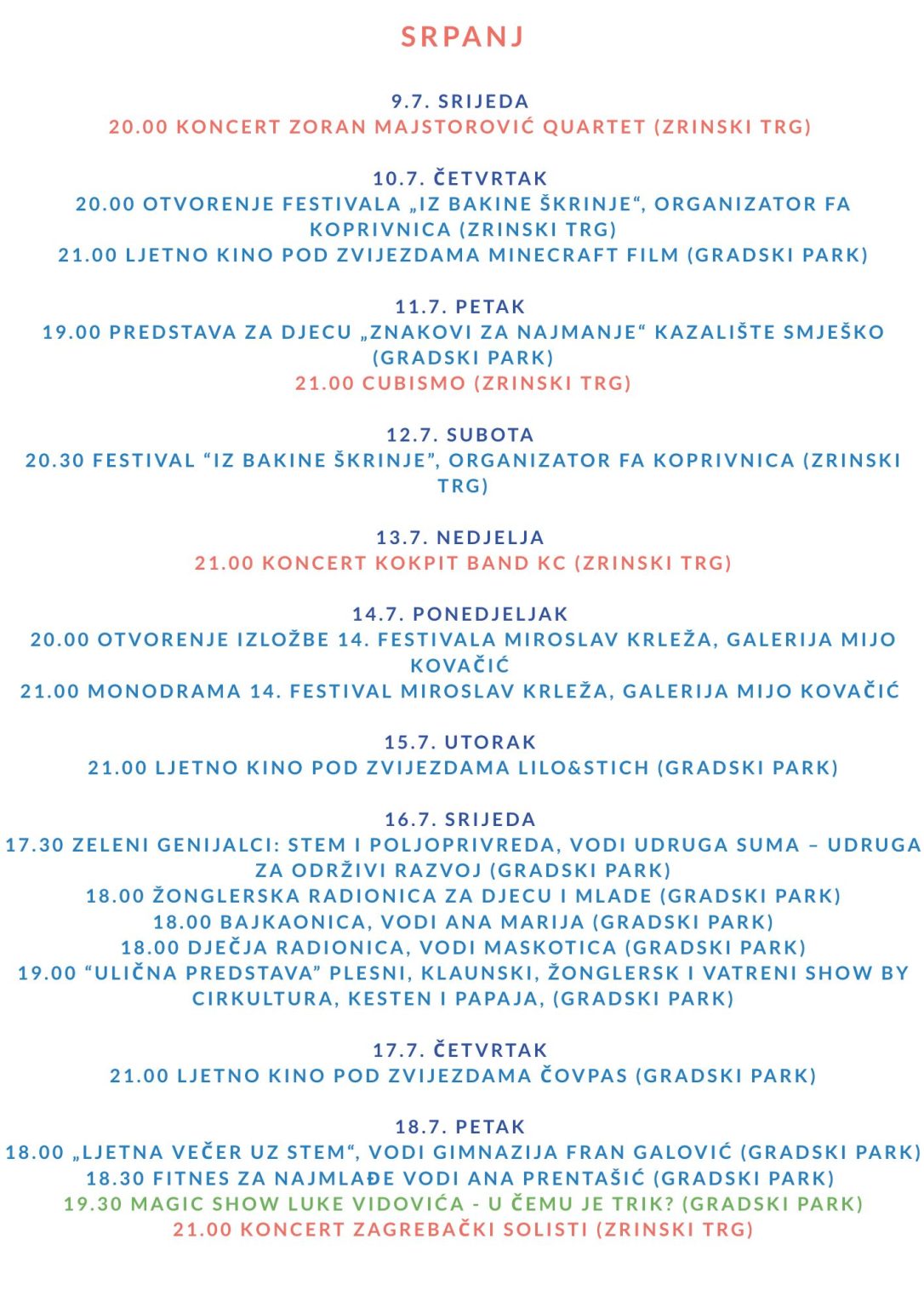 Čitav program ovogodišnjeg Ljeta na Zrinskom donosimo vam u nastavku: