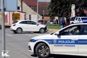 Kako doznajemo, sudarili su se kombi vozilo i osobni automobil i to navodno zbog oduzimanja prednosti prolaska.