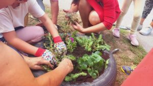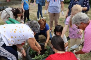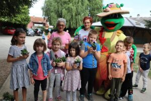 Djeci su se pridružile članice Kluba umirovljenika Volonter penzioner i Mirka Kompostirka koja je zemlju obogatila kompostom DomKo kako bi nove sadnice dobile sve potrebne nutrijente i rasle u prirodnim uvjetima.