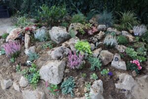 Posađeno je 10 vrsta raznih trajnica koje će svojom biljnom raznolikošću i ljepotom krasiti kamenjar. Komunalac je za ovo uređenje izabrao biljke koje se dobro uklapaju u kamenjare – kinesku kuriku, babinu svilu, koraljni zvončić ,šaš, bršljan, lovorvišnju i malolisnu kuriku, a u kamenjaru će svoje mjesto naći i sadnice koje su mališani donijeli iz svojih vrtova i cvjetnjaka.