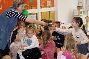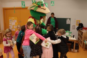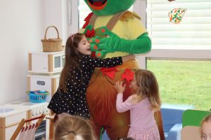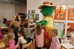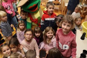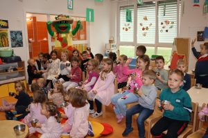 Nakon radionice, mališani su imali priliku za druženje s Mirkom Kompostirkom, maskotom projekta o pravilnom razvrstavanju otpada i očuvanju okoliša. Mirka je kroz interaktivne igre djeci približila važnost recikliranja i održivog načina života, što je dodatno obogatilo cjelokupno iskustvo. Mirka Kompostirka je sa sobom donijela i kompost DomKo iz Kompostane Herešin te zajedno s djecom posadila sjemenke jabuke i kruške o kojima će mališani zajedno sa svojim odgajateljicama brinuti kako bi nikle zdrave biljke.