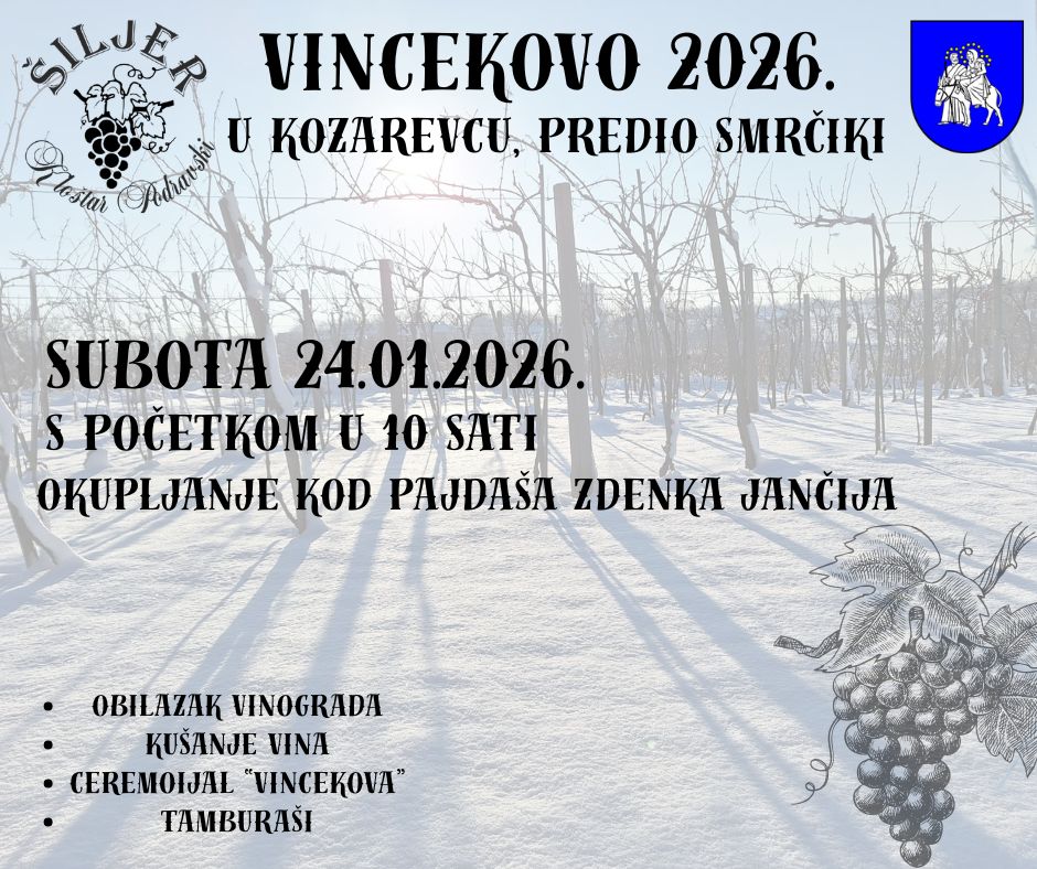 Manifestacija će se održati u subotu, 24. siječnja, u vinogradarskom predjelu Smrčiki u Kozarevcu, s početkom u 10 sati, kod Zdenka Jančija. Nakon okupljanja i prigodne zakuske, sudionici će krenuti u obilazak vinograda uz tri postaje na kojima će se moći kušati vina domaćih vinara.