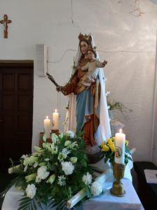 I crkva u Glogovcu dobila je naziv po Mariji, Majci Božjoj “Majka Božja Srpanjska” još davne 1938. godine kada je počela biti građena na inicijativu ondašnjih vjernika i rudara da bi tijekom rata bila dovršena te poslije rata zapuštena. Ponovo je obnavljana 60-ih godina, a 1994. godine uz pomoć vjernika i dobročinitelja zaposlenih u inozemstvu i proširena. U crkvi se između ostalih kipova nalazi i kip “Marije pomoćnice kršćana” prema kojoj pobožnost potječe od samih korijena kršćanstva.