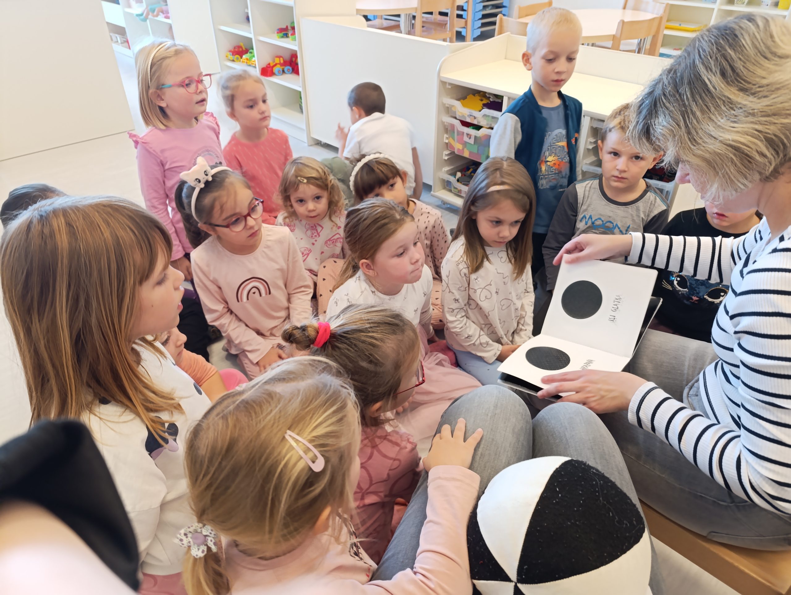 Isprobali su hodanje s dugim bijelim štapom, igrali se sa zvučnom loptom, a posebno ih je razveselila prilika da vode Anu, članicu Udruge, koja im je pročitala priču napisanu na brajici, što je kod djece izazvalo veliko zanimanje.
