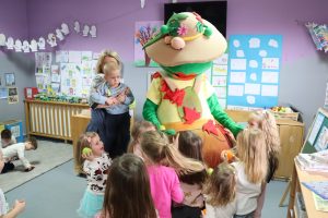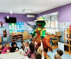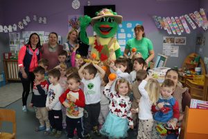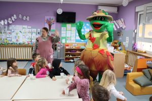Posebno ih je razveselio gost iznenađenja – maskota Mirka Kompostirka, uz koju su djeca kroz igru, ples i smijeh učila o biootpadu i važnosti kompostiranja. Mirku su dočekali s velikim oduševljenjem, a susret s njom dodatno je obogatio cijelu radionicu i učinio je još veselijom i poučnijom.