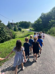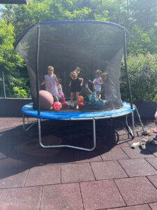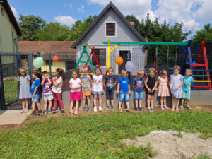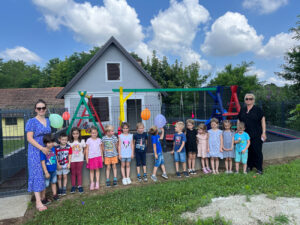 Mališani su stigli pješice, a tamo su ihdočekali veseli i nasmijani mama Jasna, deda Božo i baka Mirjana. Djeca su se odmah razbježala i upustila u igru na njihovom igralištu te kućici opremljenoj sa puno različitih igračaka.