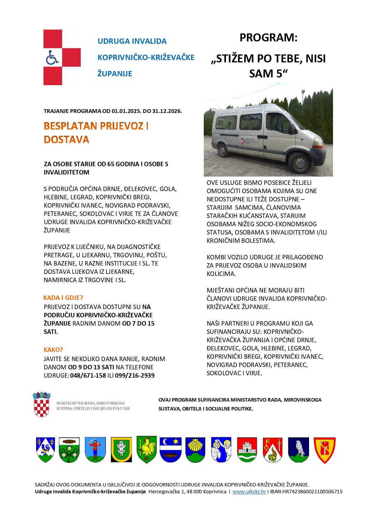 „STIŽEM PO TEBE, NISI SAM 5“ – besplatan prijevoz i dostava za osobe starije od 65 godina i osobe s invaliditetom