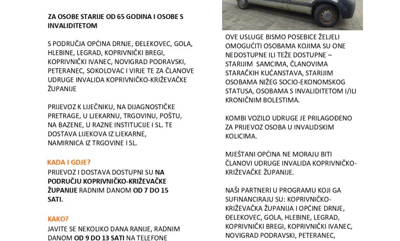 „STIŽEM PO TEBE, NISI SAM 5“ – besplatan prijevoz i dostava za osobe starije od 65 godina i osobe s invaliditetom