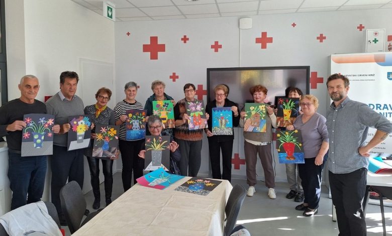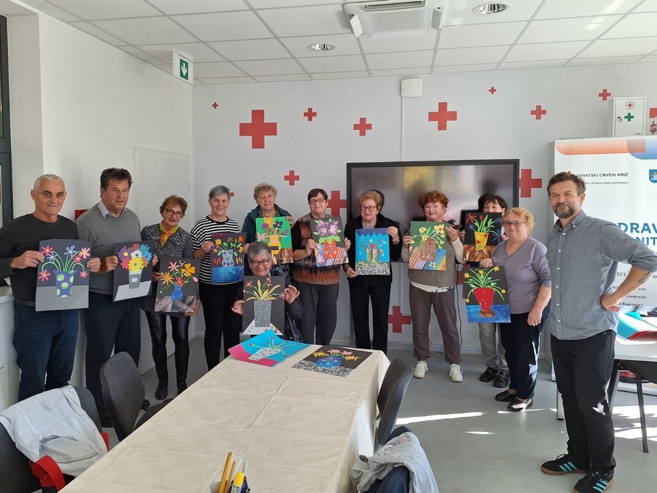 – Voditelj je okupljenima objasnio kako mogu napraviti zanimljive likovne radove koristeći kolaž papir, škare i ljepilo te puno mašte. Kao motiv radova odabrana je vaza s cvijećem, inspiracija su bili radovi Henrija Matissa i drugih slikara koji koriste jarke boje, a Zvonimir Haramija objasnio je glavne značajke kompozicije na koje treba paziti. Uz veselo druženje i kombiniranje boja, na tečaju su nastali vrlo interesantni radovi od kojih će neki krasiti zidove koprivničkog Crvenog križa – naveli su.