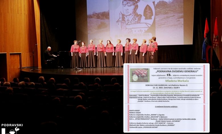 Događanje je posvećeno generalu Mladenu Markaču, povodom 13. obljetnice oslobađajuće presude u Haagu, a u sklopu programa nastupit će Marta Ređep, Marica Hasan, KUD „Resnik“ iz Zagreba, KUD „Bjelovar“ iz Bjelovara, KUD „Petar Preradović“ Đurđevac – dječja folklorna grupa uz tamburašku sekciju i ženski vokalni sastav „Katarene“, folklorna skupina Kulturne udruge „Sveti Martin“ iz Dubrave, mješoviti zbor Matice umirovljenika Grada Đurđevca „Đurđeki“ i tamburaški sastav „Podravski bećari“.