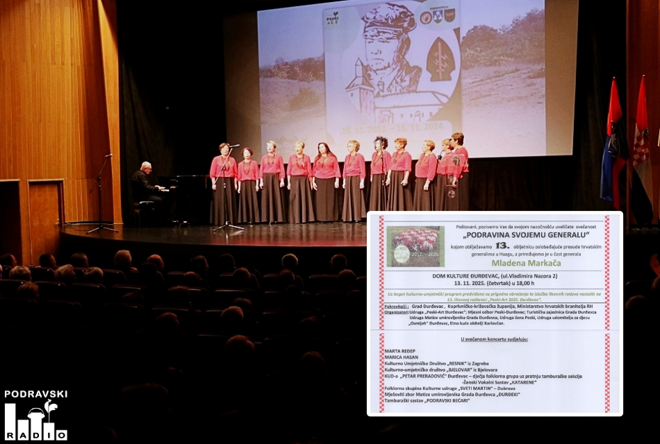 Udruga Peski-Art Đurđevac organizira manifestaciju „Podravina svojemu generalu“, koja će se održati u četvrtak, 13. studenoga 2025. godine, u Domu kulture u Đurđevcu s početkom u 18 sati.