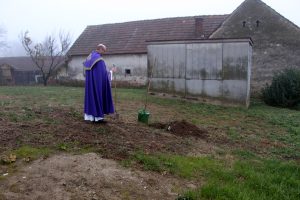 Obred sadnje, molitvu i blagoslov predvodio je župnik i dekan preč. Tomislav Leskovar, a sudjelovali su i članovi Družbe te mještani, osobito stanovnici kvarta Brvci i Basaričekove ulice.