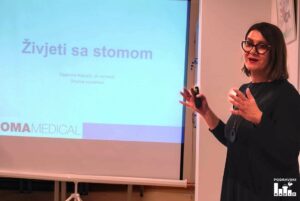 Predavanje su održali dr. Iva Fucak, subspecijalist internističke onkologije, dr. Ivica Jendrašic, dr. med. specijalist internist i Vladimira Kranjčić koja je govorila o životu sa stomom i pomagalima koja su dostupna za lakši život: