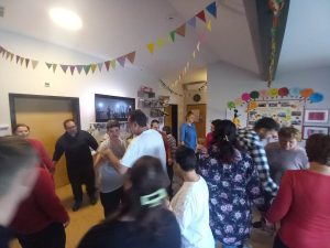 Povodom obilježavanja druge godine boravka, stanari su pripremili prigodan program kao i zakusku i dobru glazbu. Korisnici poludnevnog boravka s nestrpljenjem su im stigli čestitati i uručiti male znakove pažnje.