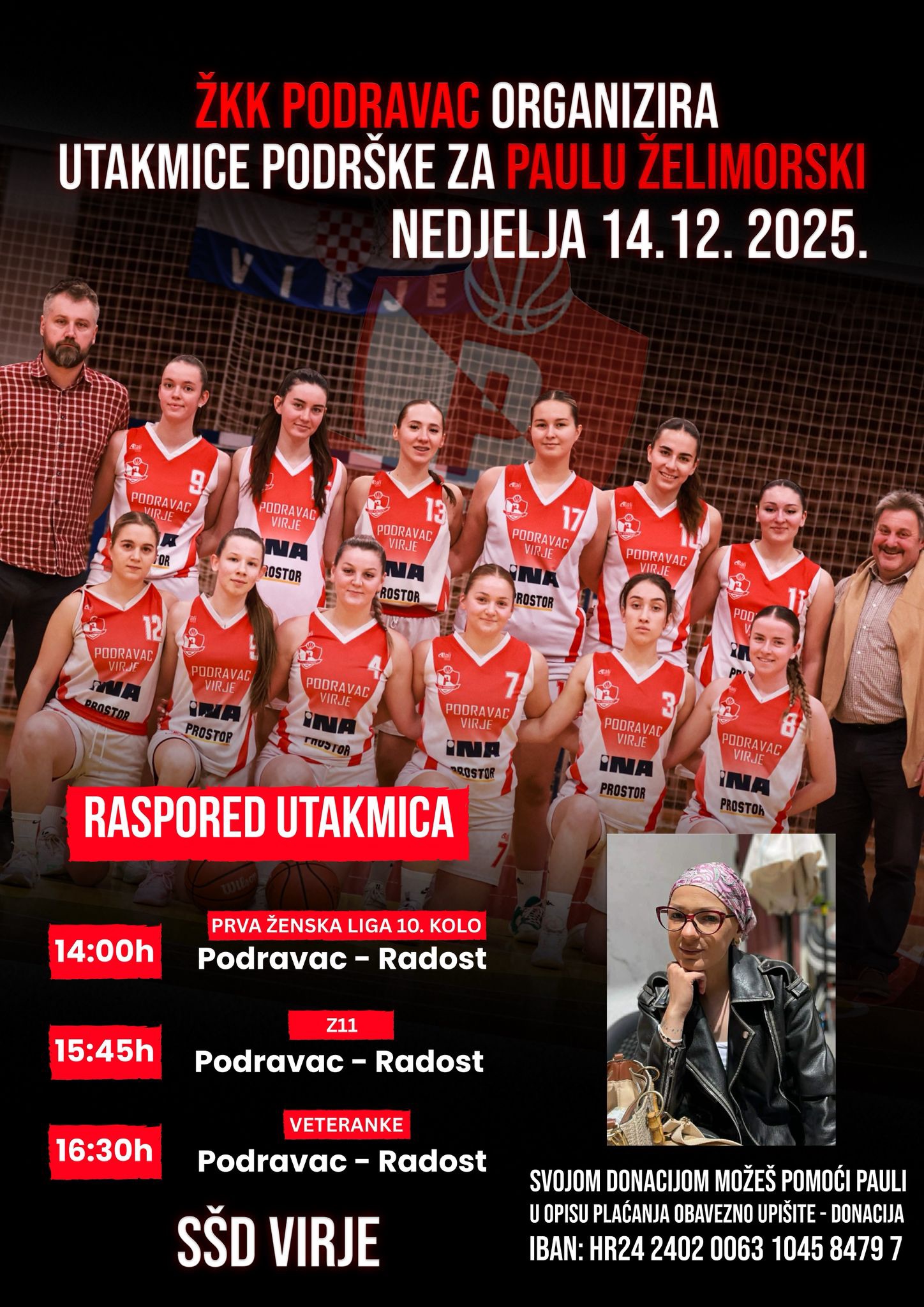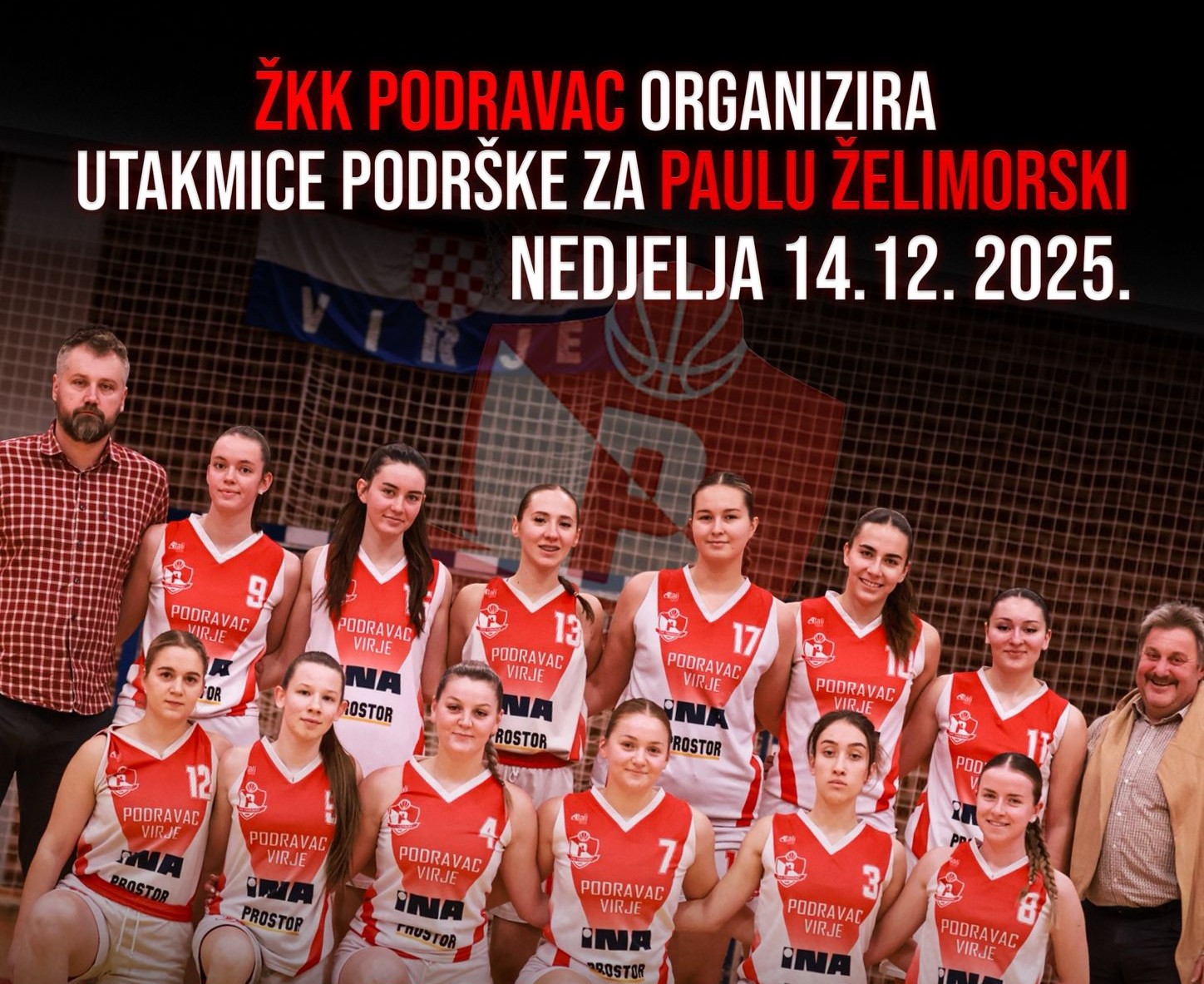 Ženski košarkaški klub Podravac poziva sve građane, sportaše i ljubitelje košarke da se pridruže utakmicama podrške posvećenima Pauli Želimorski, kojoj je potrebna pomoć kako bi mogla nastaviti liječenje u inozemstvu.