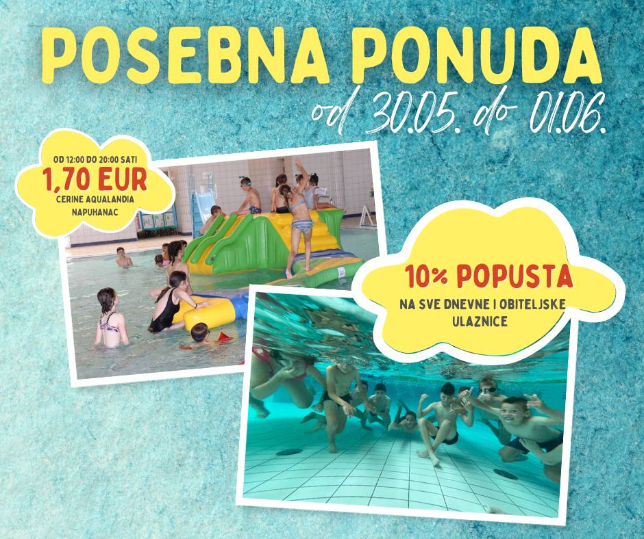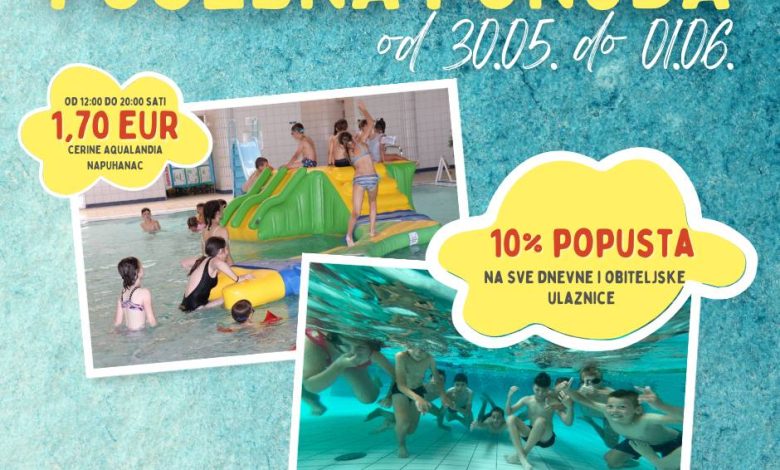 Od 30. svibnja do 01. lipnja iskoristite 10% popusta na sve dnevne i obiteljske ulaznice i provedite nezaboravan vikend na Gradskim bazenima Cerine!