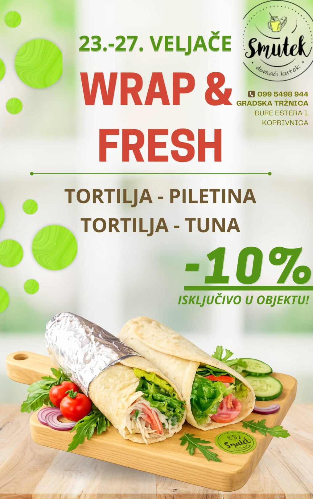 U Smuteku nastavljamo s posebnom ponudom tjedna, a ovaj put u fokusu su svježe i zasitne tortilje – “Wrap & Fresh”. Osmišljene su za sve koji žele brz, uravnotežen i ukusan obrok pripremljen od kvalitetnih sastojaka.