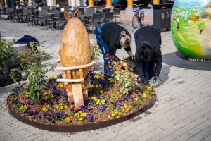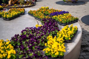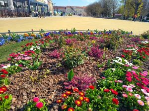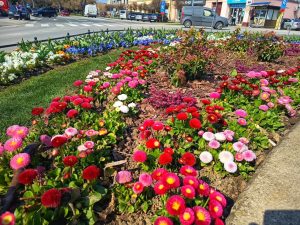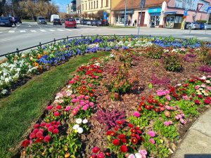 Poseban ugođaj dodatno upotpunjuju cvjetne sadnice. Posađeno je više od 800 cvjetnih sadnica među kojima dominiraju maćuhice raznolikih boja, cvatuće trajnice te pažljivo odabrano ukrasno grmlje poput lovoravišanja i fotinije. Na centralnoj fontani nalaze se kombinacije zimzelenih biljaka i cvatućih trajnica, osmišljene tako da cvatnja traje kroz sva godišnja doba, pa čak i zimi. Hudika, zimzelen i crnjuša prvi dočekuju pčele i leptire s ranom pašom, dok raznobojne trajnice i sezonsko cvijeće unose živost i boju u toplijim danima. Zadržana je i stazica kroz gredice, koja omogućuje posjetiteljima da zakorače među biljke, uživaju u njihovim bojama, mirisima i teksturama te dožive ovaj mali gradski vrt iz svih kutova.